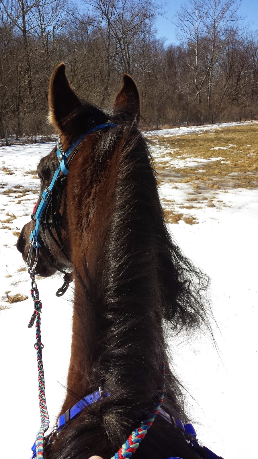 We got enough ice off the ground to deal with the slush and mud for a slow ride today at the barn.
