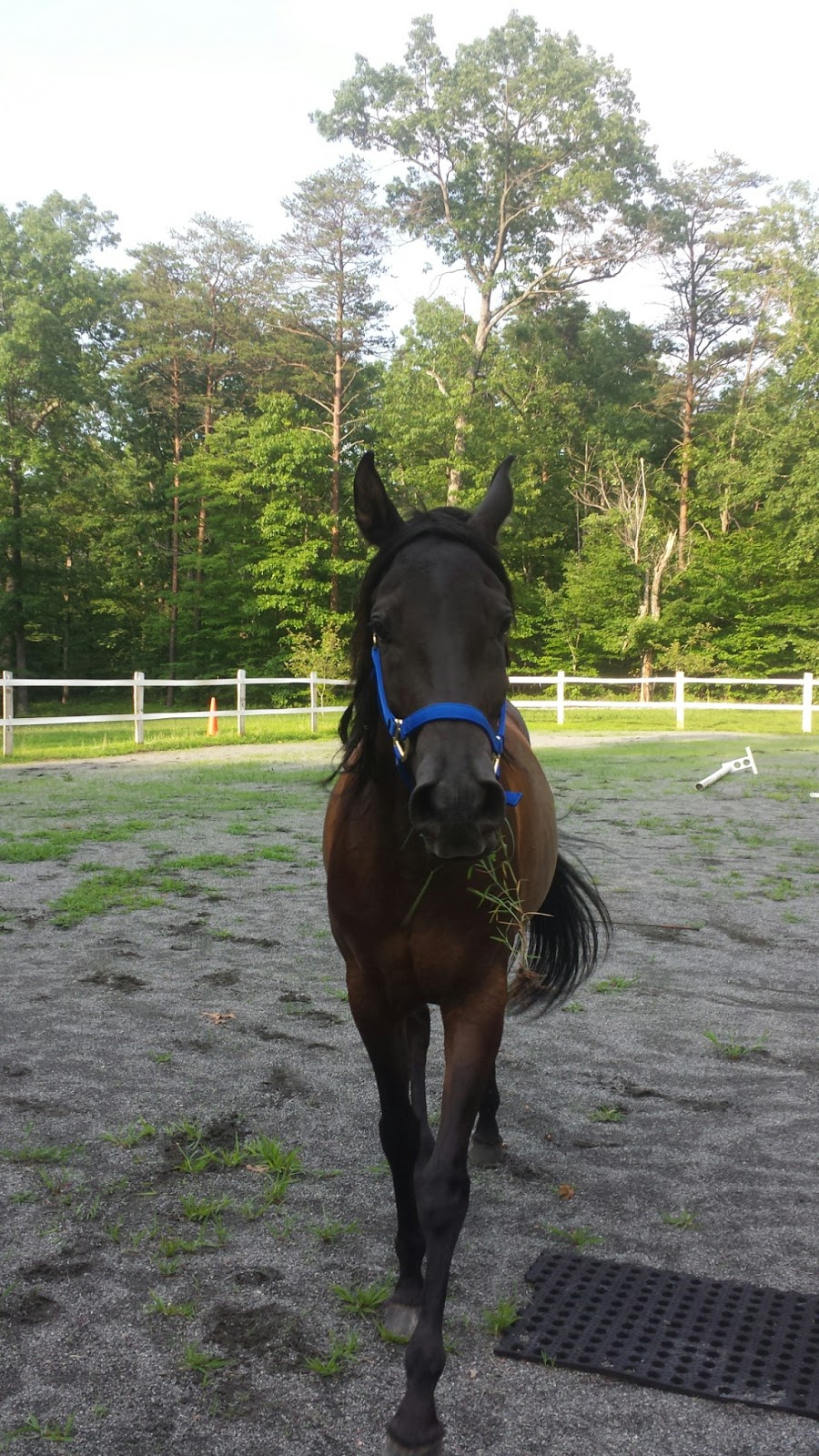 So Friday after work I got out to him, which was just a day shy of 2 weeks post ride completion. I knew from the last ride that he seems to “forget” the basics for a week or so post ride so I just planned on only doing some nice lunge line work on the circle. We had a nice calm walk one direction, and I’d ask the other, he’d get 1/2 around and then spin and bolt back the other direction…. Resulting in one rope burn for me (I seem to forget I really need gloves for my flat long line!) and then turning him loose to run around the arena …