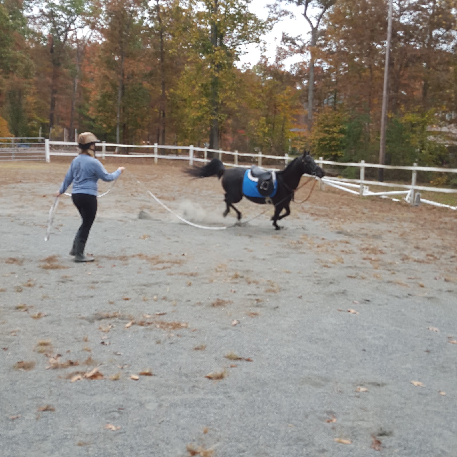 | Amanda had him on the lunge line to get used to her tack and get him thinking |