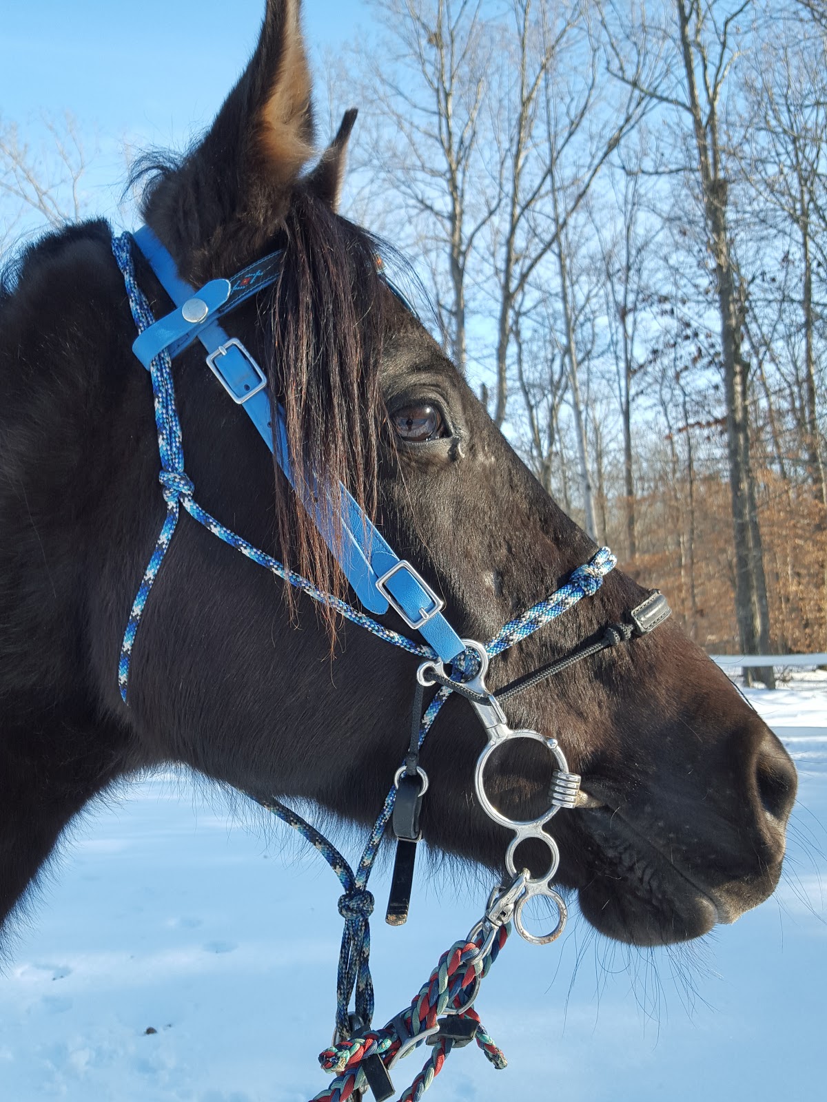 So he was a total teenager/toddler today. I couldn’t do as much lunging before hand as the arena was still well covered in hoof+ deep snow. But we walked and did some figure eights, one instance of “let me try and jump forward, throw my head down and think about bucking” move. Then we just kept walking and walking…Once I felt he was ‘ears on me’ enough I went to take him out for a driveway walk. He did really well standing at the block when I remounted after opening the gate. Didn’t move a muscle till I asked. He actually was crowding the block too, making it a little difficult to get on but that is better than being too far away!