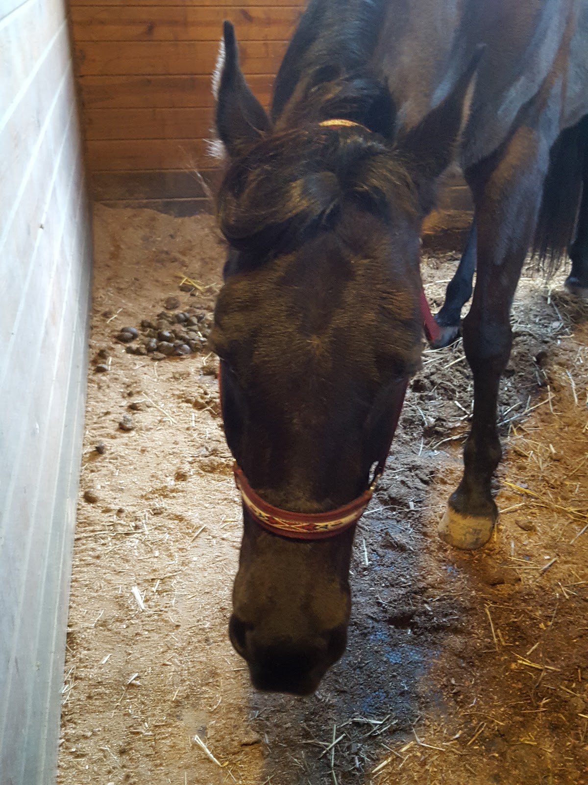 So he’s been resting. Swelling went away, and he is just still a little stiff in the rear when first getting out of his stall.