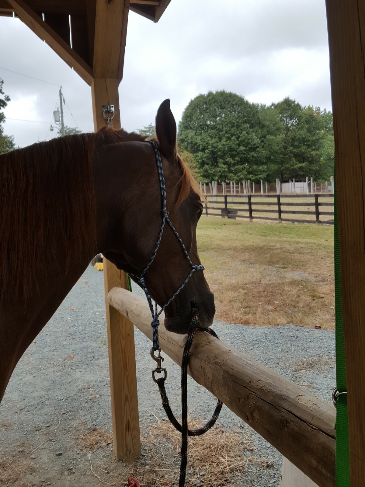 And then we have these moments just hanging out while his feet soak (after the torment of all the tacking up and riding), where I caught him trying to untie himself and he makes me laugh it all away.