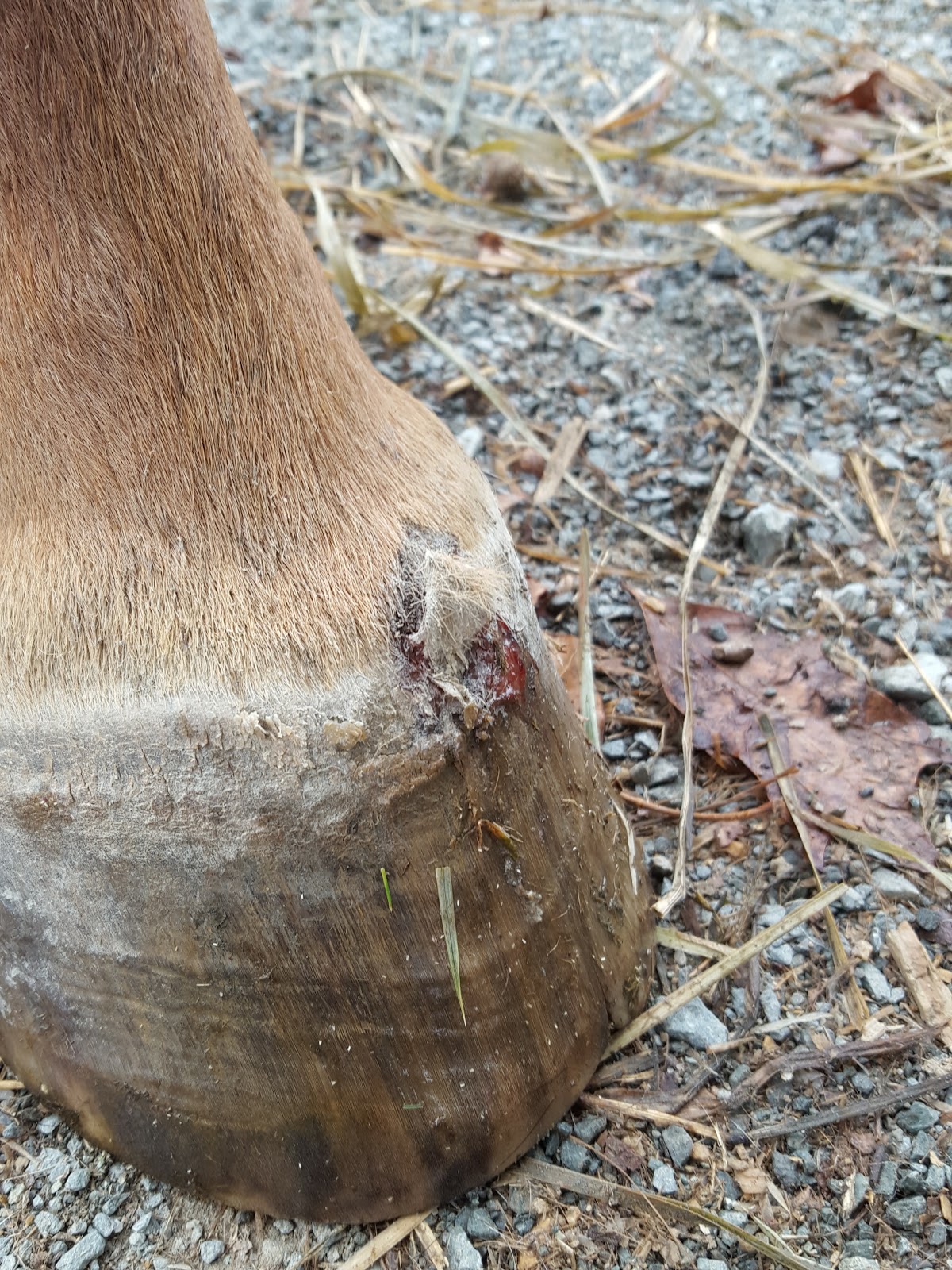 Unfortunately, I found this fun wound…I imagine he wacked it in the round pen where he has been spending much of his time lately (main field is on rest, so the horses are all getting jostled around and he an the minis trade time in one lot and the round pen). I felt no heat from it, and he wasn’t at all lame so cleaned it off and put some ointment on it before and after we rode.