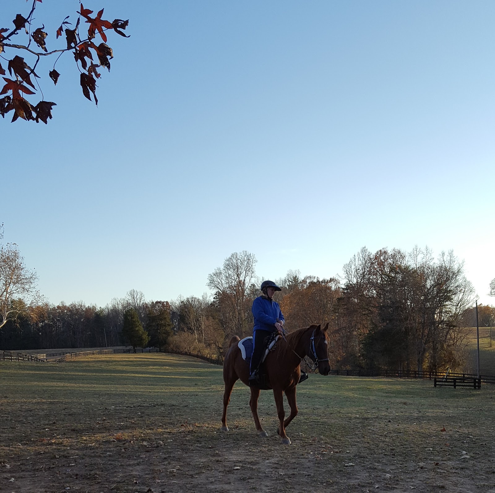 I think I’ve figured out the correct stirrup set-up, and now I’m just tweaking the saddle pad. It really feels comfortable for me, no hip pain, I’ve remedied the knee issue from the first ride (and resulting ruffling of his coat as I kept adjusting in the saddle during our ride), and I still have a few more adjustments I could make for myself if I need to.
