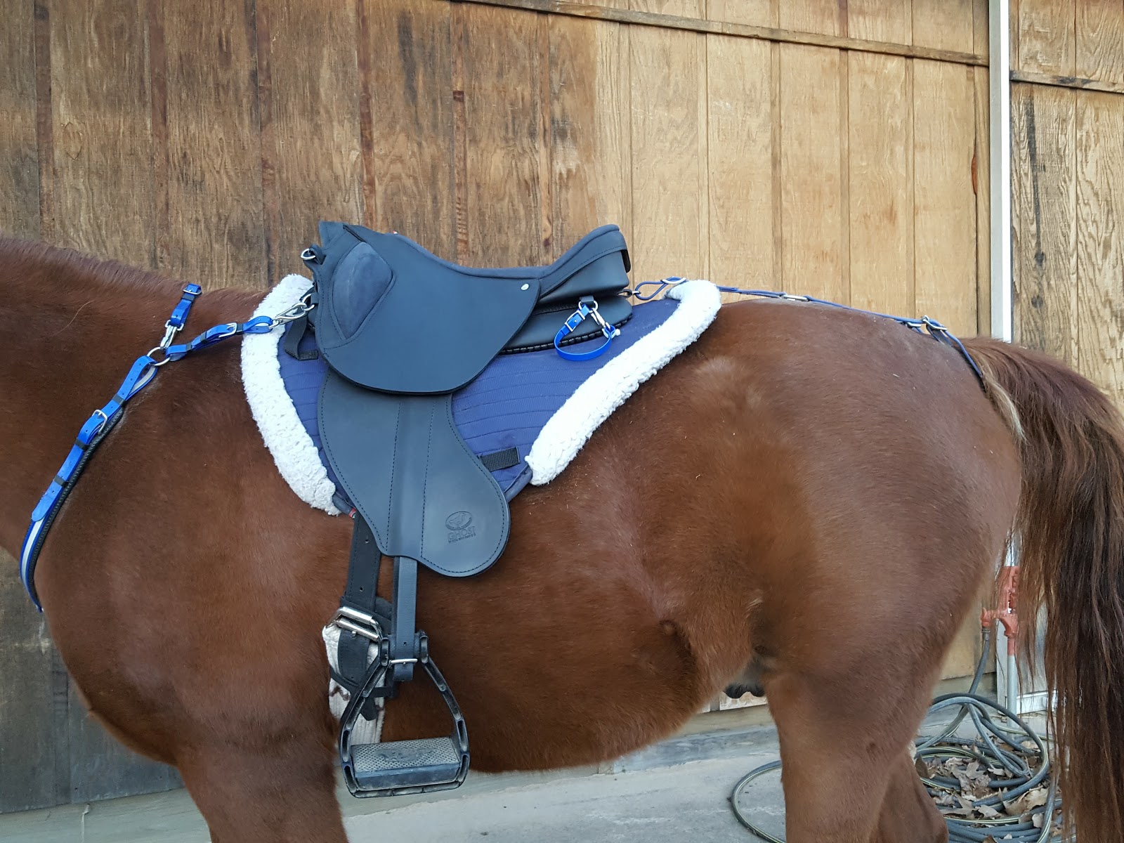 This week we did a walk with a ‘tight’ crupper instead of flapping in the wind behind Monday, and then some round pen work trying out yet another pad combination Thursday (no go), and lastly Sunday we had 72 degree day to enjoy the trails! Of course, with each of those came also treating his front right hoof for the WLD….sigh.