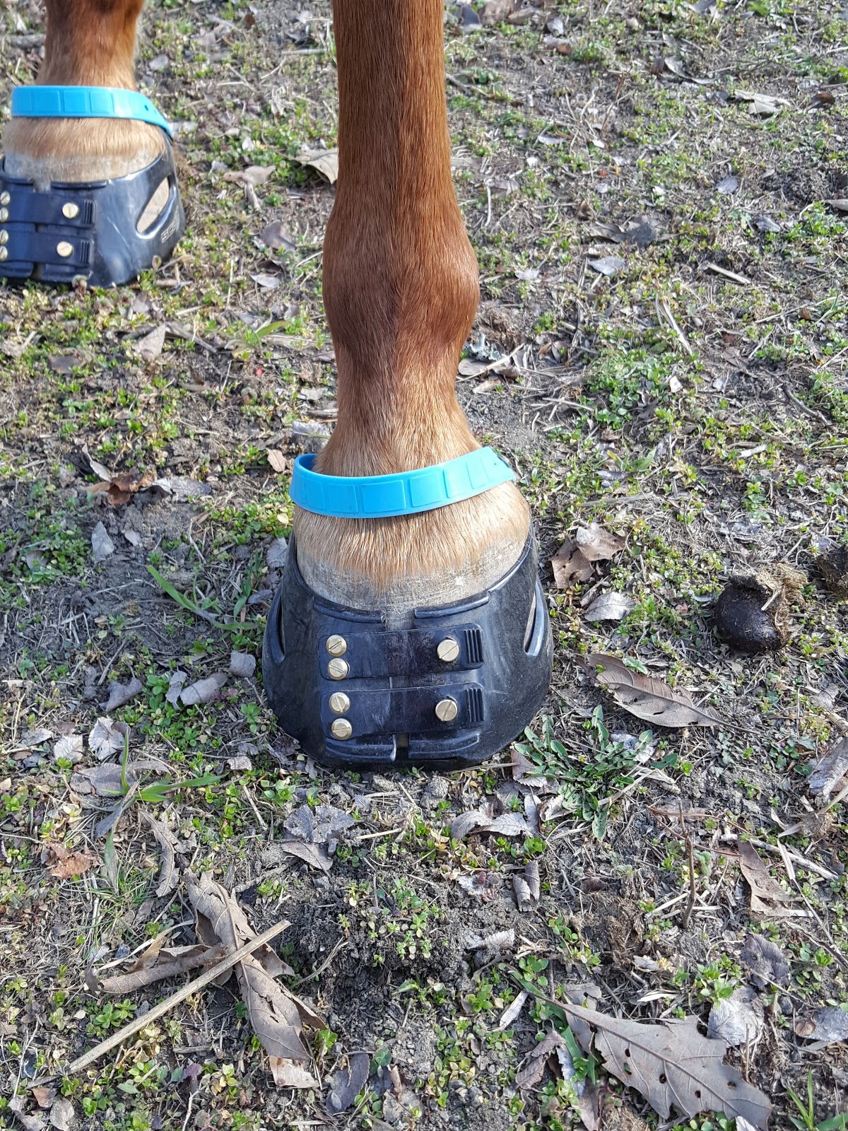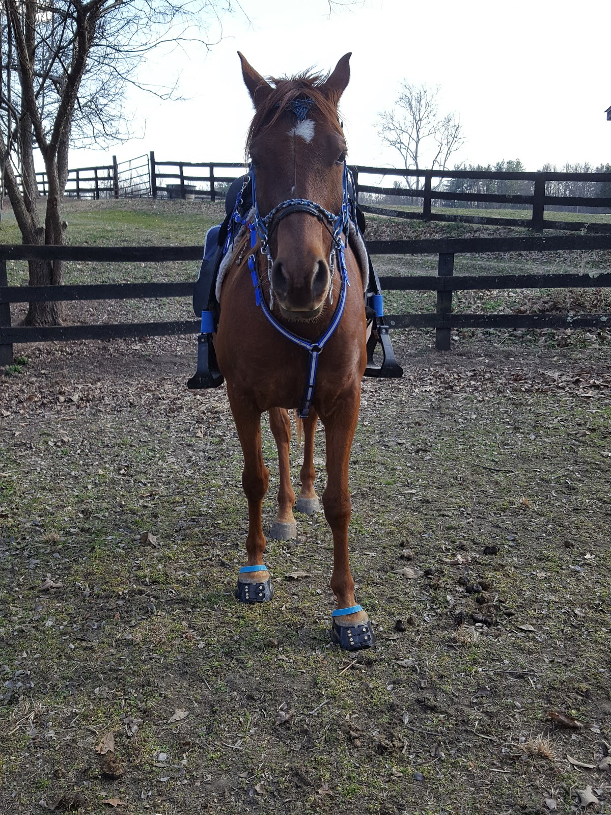The cool thing about it though, was I got a pair of Scoot Boots to use on his front feet! The company is based out of Australia, and they are super simple to put on. He took a few funny steps as we went to the round pen, but then adjusted easily. I gave him a few minutes to figure them out in there and then we headed out with a good boy at the mounting block without running off…so I not all was lost today – we had good moments.