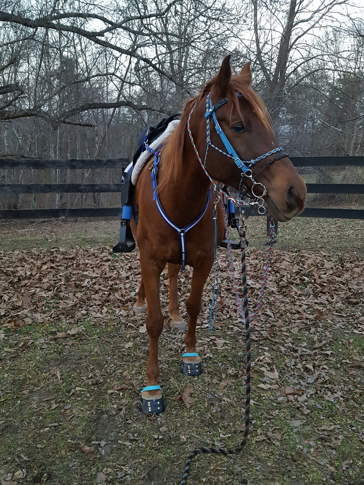 I worked him in the round pen a bit more before our ride, and got to see a nice extended trot using the Scoot Boots. I think he is adjusting well to them 🙂 I really like how simple they are to get on and off!
