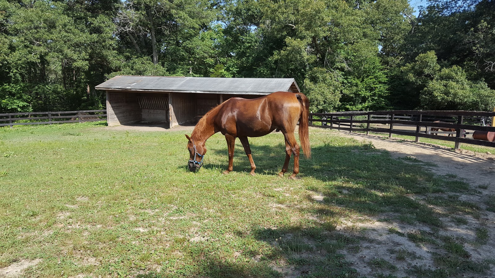 Before my emotions go awry I grabbed another ride with Suzette & Willie this morning (Monday). Prophecy came in stiff today, so I spent some extra time on his lower back and hamstrings. He was flinchy on his left side lower back, not normal for him. I learned they were all a bit riled up last night, so maybe he took a spill. We tacked up, but not without him attempting to bite me to which he got a swift reminder about the unacceptability of that action. I decided to press on, and if he felt off or acted out I would just hand walk to keep him moving and stretched out. Once mounted he relaxed and perked up. We kept things mainly to a walk, only a little trotting at the end. He loosened up and was not nearly as “fussy” as the last ride, just a little bit of buck but nothing as big as before. His back stopped flinching after our ride and he got a nice hose down before turn out. Hopefully the riding and hill walking helped loosen that tight spot.