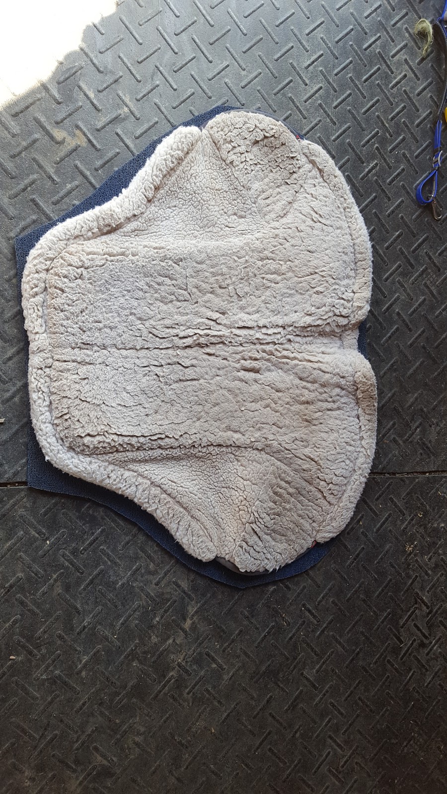 Basically he got another round of a week off until my return to the barn the 29th. I went out with Suzette on Willie and boy was he just ‘fussy,’ to use her words. Head fussy (but not the tossing we had before, and more that just bugs); he also attempted, and completed, bucks several times (but never to where I came off). The last one being going up the hill as we headed back to the barn. Craziness that I could not find a tack reason for. So what changed? The ‘fresh’and fussy attitude resurfaced after his last trim, as well as his visit with Sandy … I’ll be watching to see if it improves as he gets further into the trim cycle or not, and I know Sandy plans to return later July too. The pad placement for that ride was not “perfect”. I noticed into it that the matrix was not perfectly centered in the gullet, my bad for not catching that pre-ride but it wasn’t horribly out of place either. I have trimmed down the Dixie Midnight to better match the saddle pad contour now, I just think it looks “cleaner” too with the matching shape… not a perfect match but pretty good.