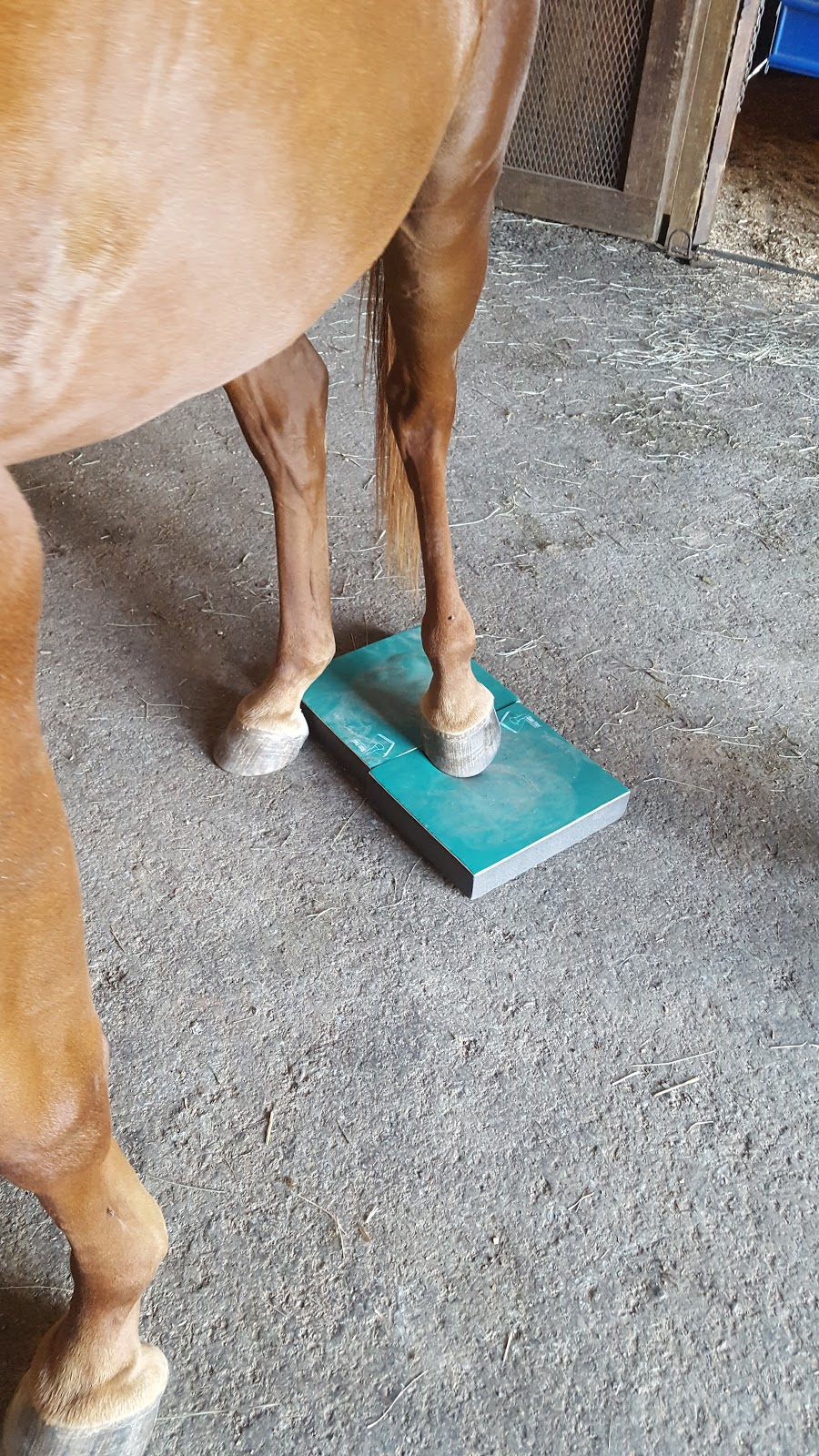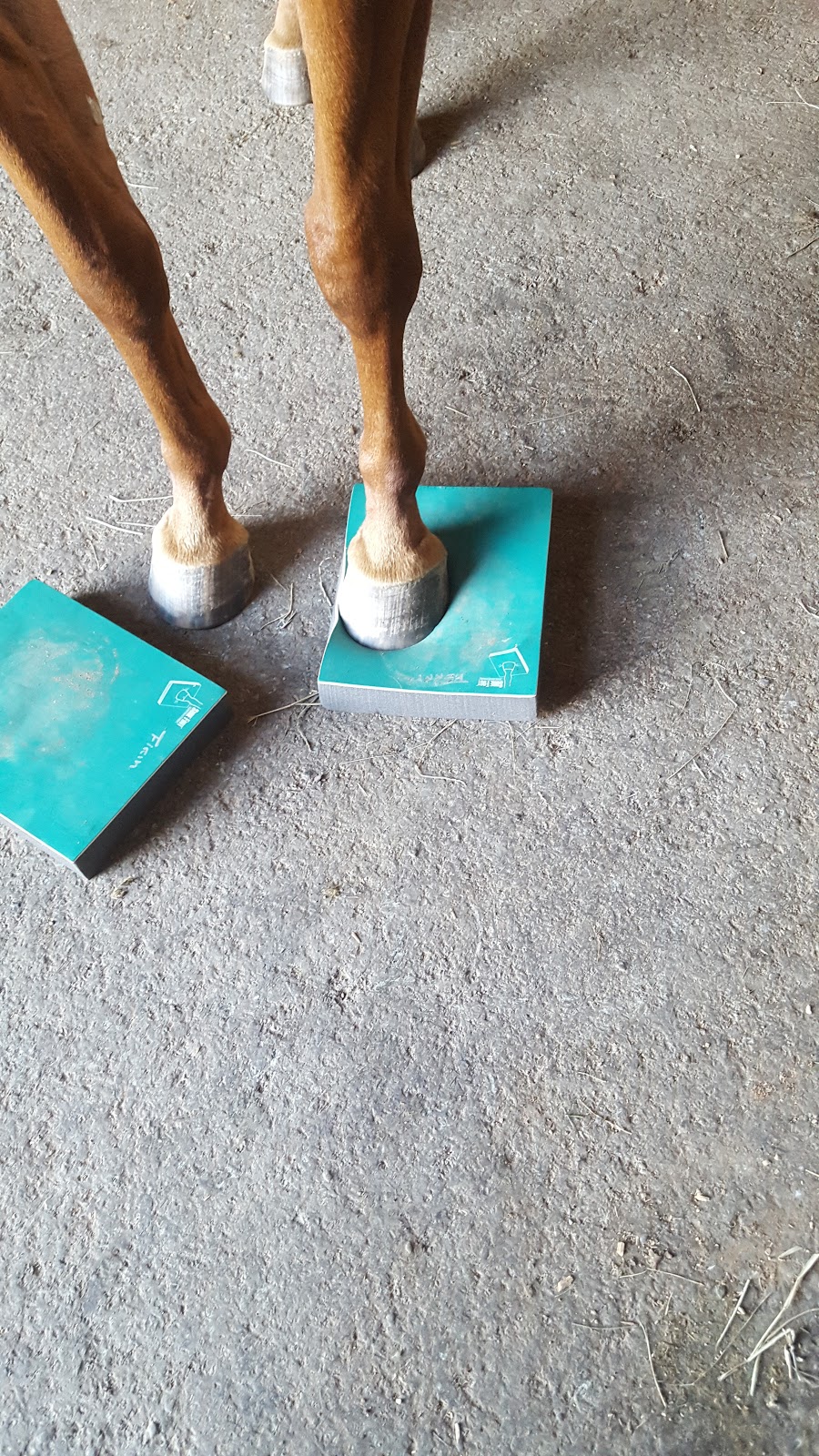 After that bit of playing around, we finally got to meet Pam Woolley for a working session. She brought her whole arsenal so we could play with whatever was needed. We did a quick history dump about him and decided to focus in on the back and that right hind awkwardness that you can see from time to time. First, just basic TTouch body focusing, then some leg circles where he presented stiffer in the RF and LH for ROM. Next we played with the Sure Foot Pads giving him time on all four (individually and in pairs) with firm pads and the wedges. His hips freed up and ribs started to swing more with the walk, as well as his back legs really reaching under better. We finished up with an 8 min session of the Bemer pad, which he was practically asleep for.
