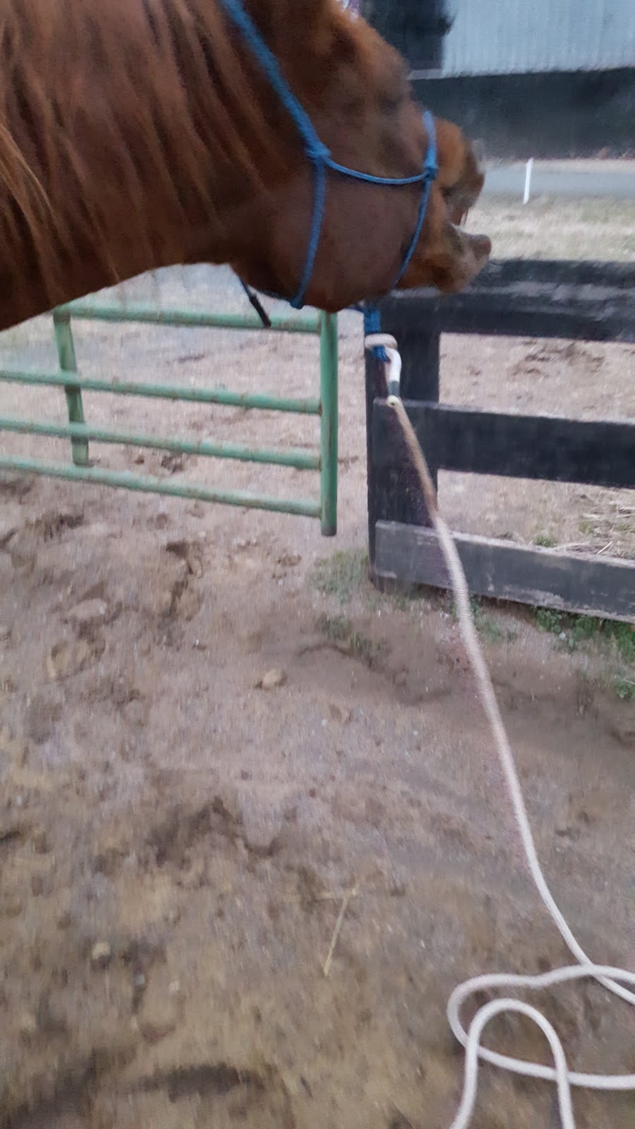 Prophecy and I graduated to working off the lunge line the ride after the last post! We are still only working a walk, but now I am in “full control” to keep him moving and provide all directions. He has come a long way with his “intolerance” issues to leg pressure and movement in the saddle, yet still can be difficult to saddle (more work to come there); we think he just might always be snarky about the girthing process; some days he is still more grumpy about the use of your leg and we just adjust our asks to help him out.
