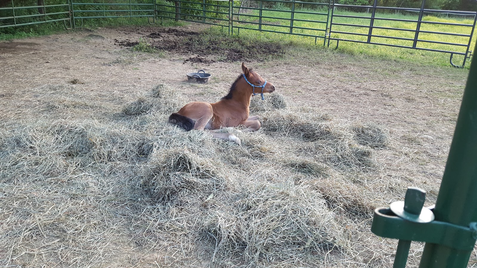 Linda let me know he traveled well and settled in nicely to the big field with two mares to hang with :