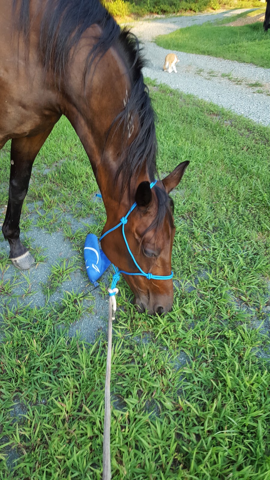 Since he was looking and feeling good we did a short session in the ring on the lunge line Sunday eve. He remembered everything from before about my requests, and was less distracted than before by the girls being so far away. I’ve also done some trot-outs to check for the lameness and sent the videos to other Standie folks trying to figure out if was off behind or just doing something funny that is normal – Apparently the issue is that I’m not running fast enough to get him into a big trot, so the back end won’t look right! I guess there is no jogging along side – must sprint! As Patricia told me, it needs to be “Running like you were in a horror movie chase scene” LOL.