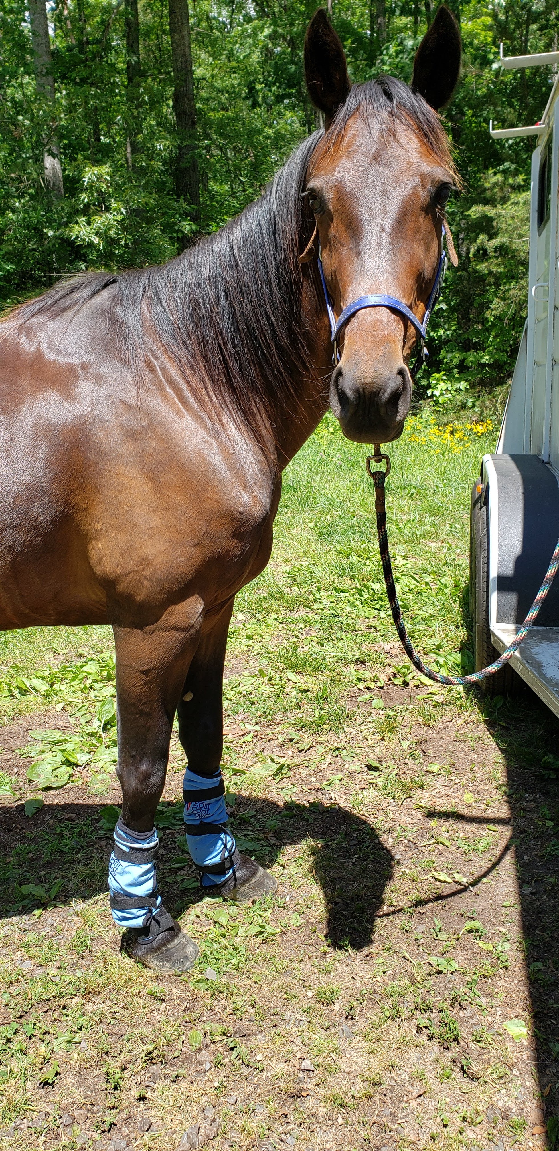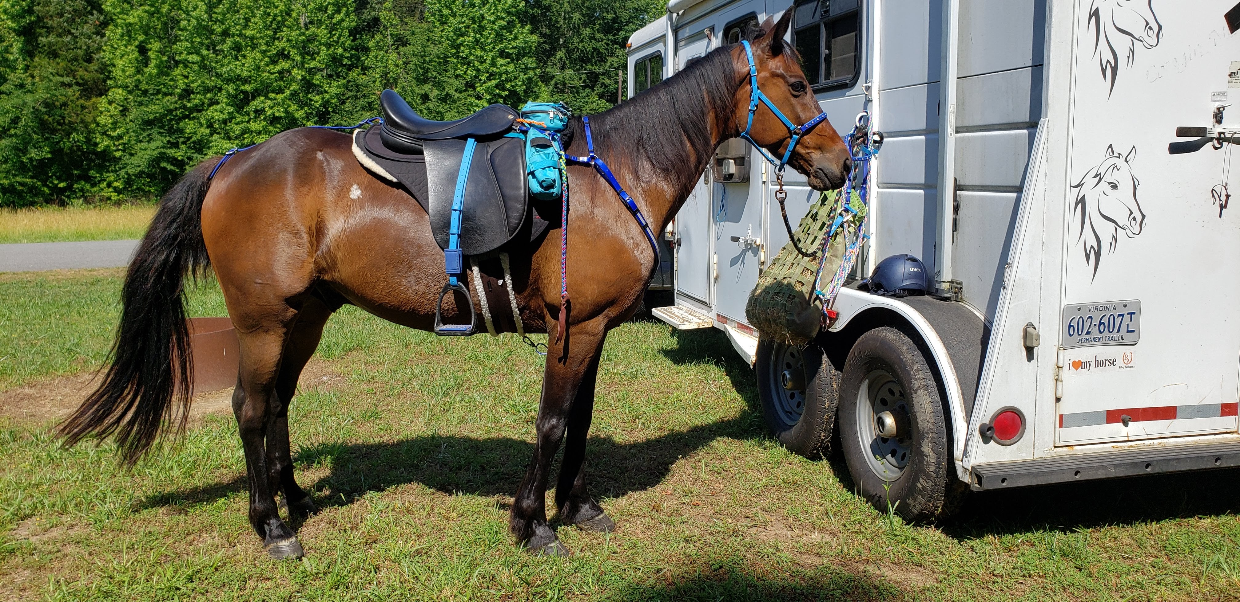 He is looking fit, in good weight (almost too good!), and has been strong on our rides. We are still working on his space bubble, and he has picked a few horses we ride with often enough to allow behind him with little objection, and I know which horses he really doesn’t like behind. He for certain reacts to feeling trapped…we had one ride he kicked at other horses several times, but when analyzing why it was always while in some muddy spot. I have been putting him at the back often, and it is funny to see how he gets a mindset to go slower there rather than trying to speed up to stay ahead of another behind us. He takes full advantage some days with lolly-gagging and snacking while in the caboose position but always enjoys the opportunity to move out when it is given. This past ride we added on the sponge and I found a good way to attach that. Next I need to figure out how to carry spare boots as I don’t have loops on the rear to gear-tie them too anymore (love my gear ties!).