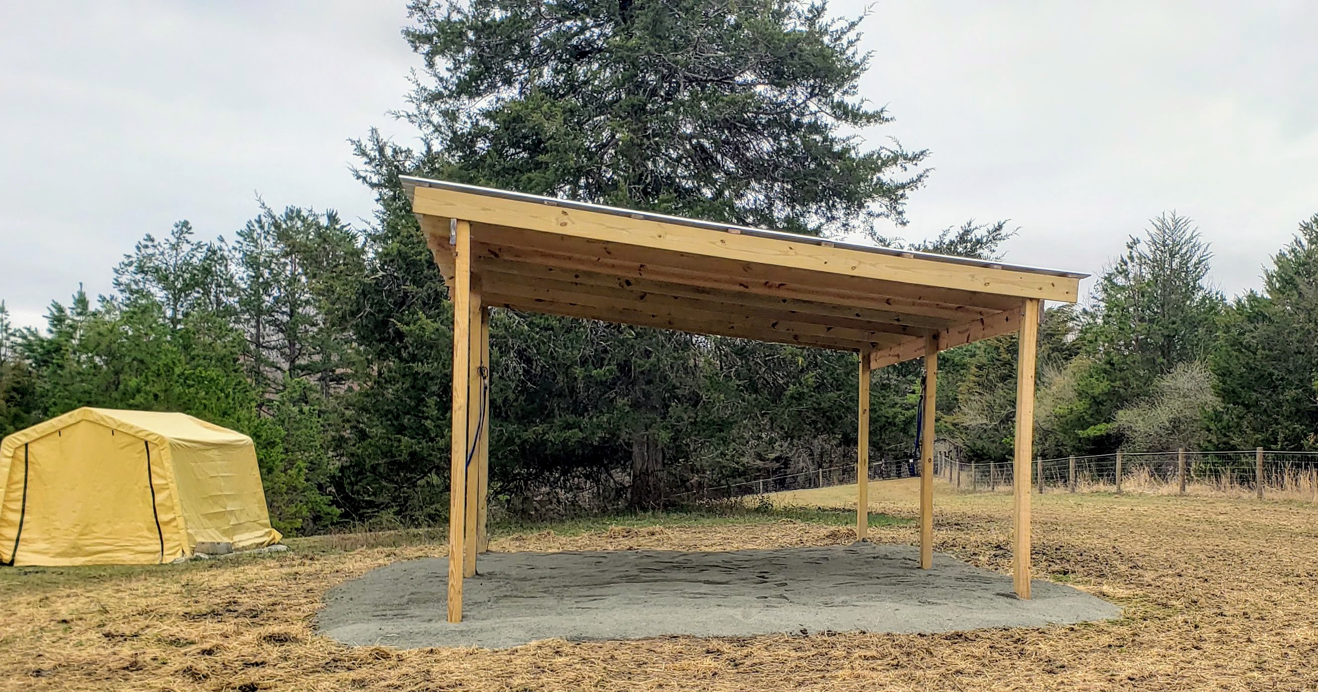 Like so many others, I had a LOT of mud to deal with this winter … In addition to having the field boosted for spring with dragging, lime, fertilizing and over-seeding, we had a longer gravel driveway installed (now have a gravel spot to keep the trailer) and gravel dust put under their shelter. It rained the very next day and can already see the grass sprouts out there! Prophecy will be back in a muzzle this weekend it seems, and I will likely get one more round bale if I can figure out when!