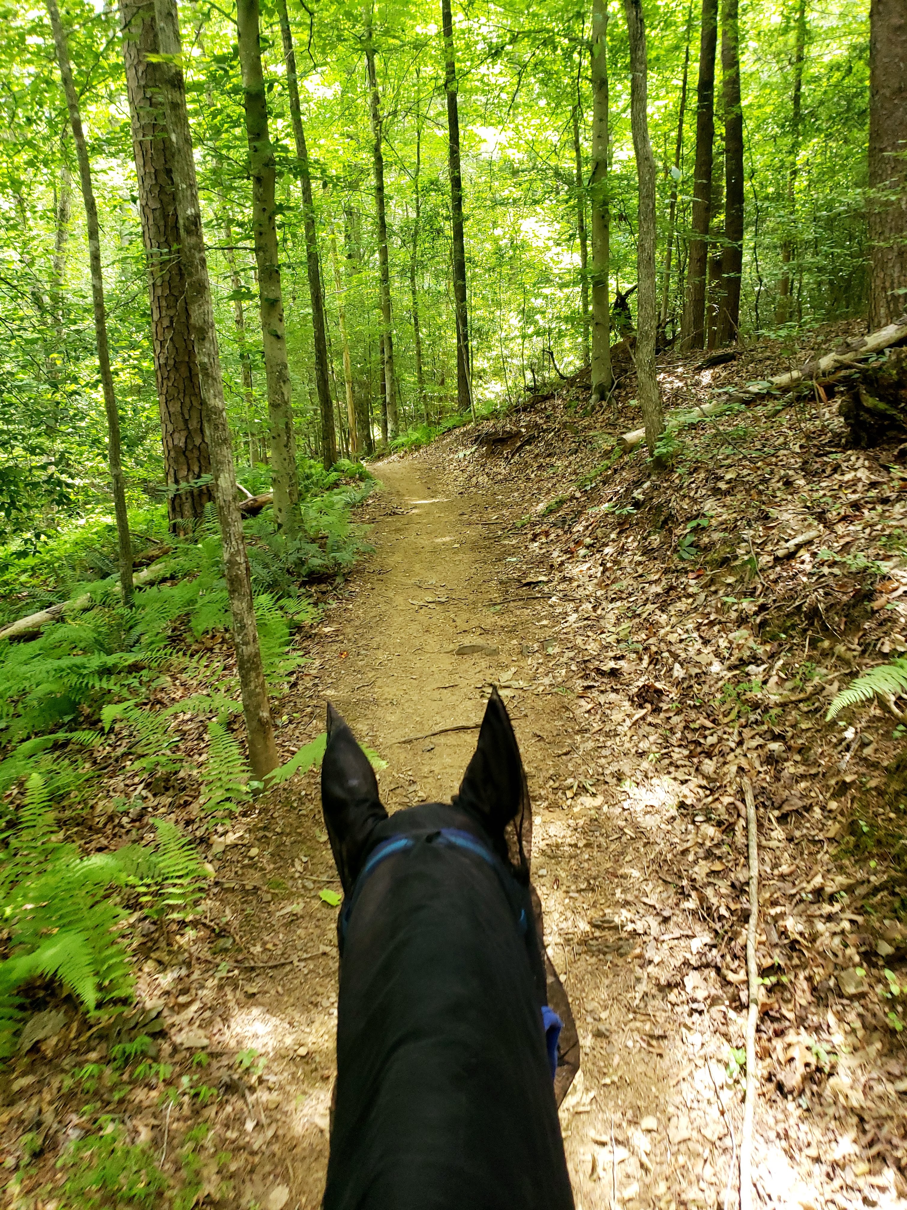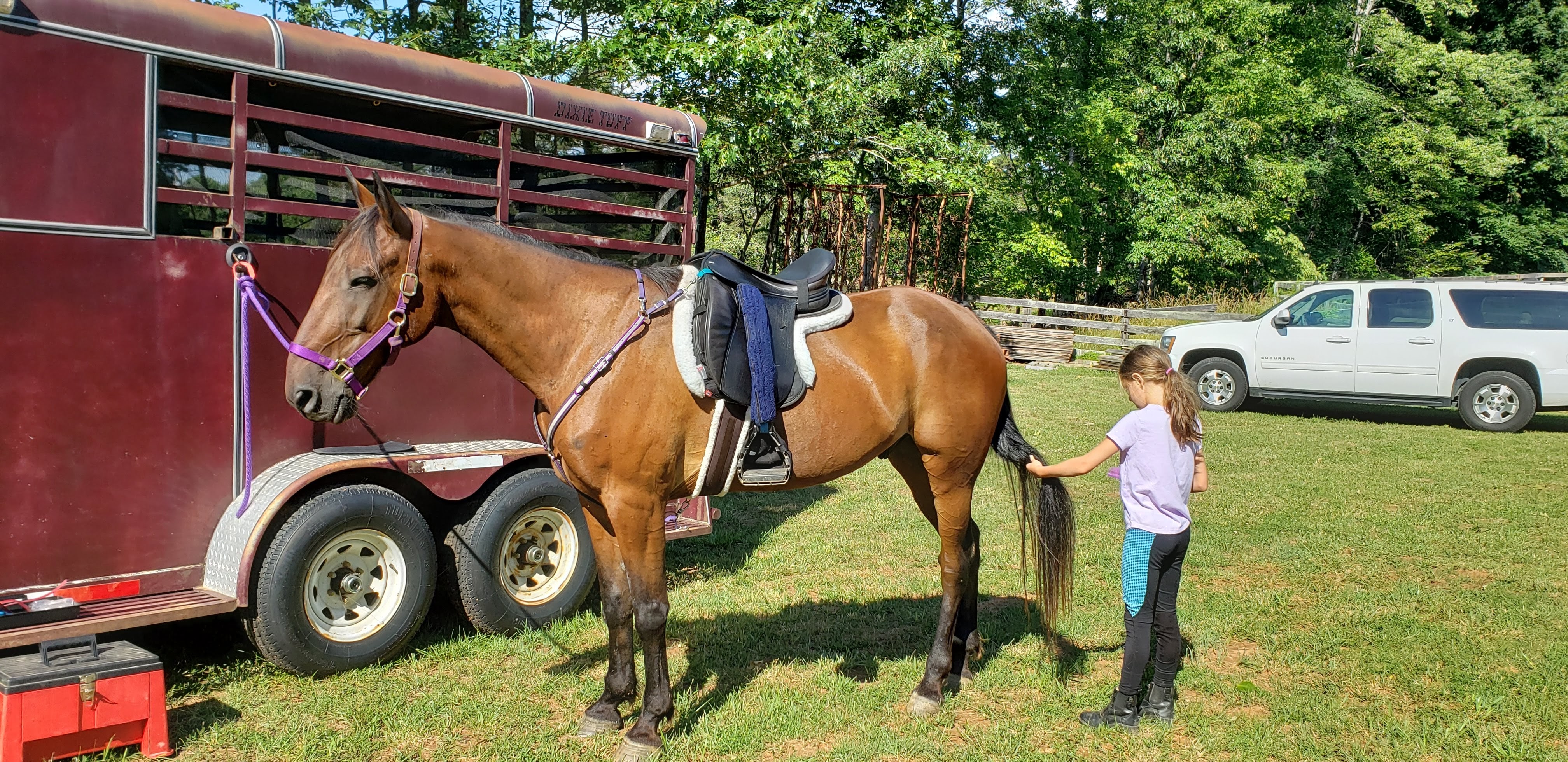 Sully had pretty much a month break, then finally got him out for a few training rides recently. Of course one planned outing was totally foiled by a screw in the truck tire! < sigh > He and Scooby have both ridden in the trailer separately, so now must see how they do together before we take our longer trip to the next clinic with both in August!