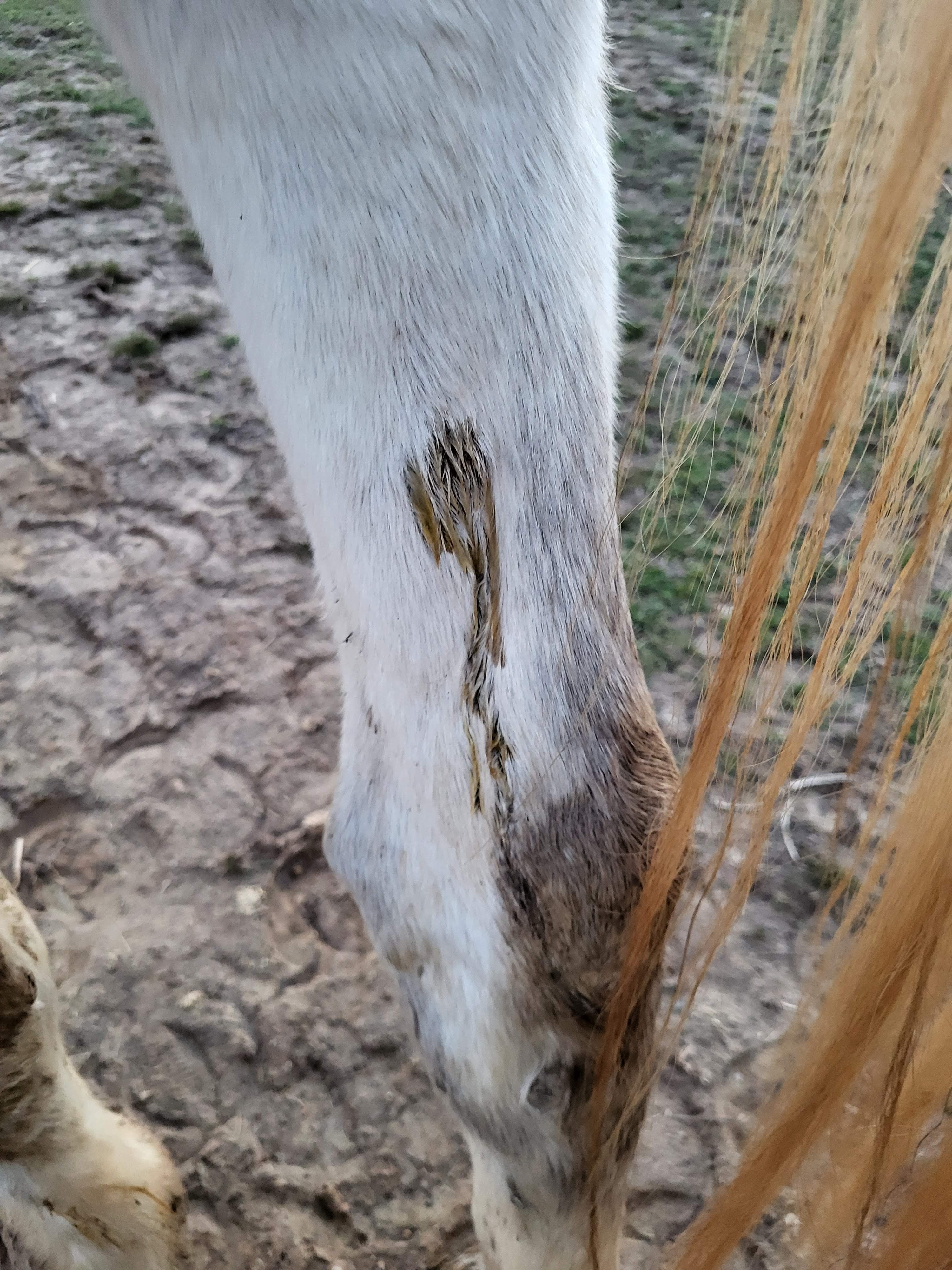 I headed out to the AERC Convention in FL for a long weekend and then the following week Breeze had an allergic reaction to something and had weeping spots all over! It was found in the morning when the osteopath came, and he had more spots by that evening, so it warranted a call in to the vet with a visit the next day. Good news all around, he was not the train wreck Scooby was upon arrival, and whatever time Breeze did do with the Amish didn’t mess him up too badly. Biggest thing is getting weight and muscle back on. The vet had us dosing with Zyrtec for 2 weeks, washing off as often as possible (which wasn’t more than 1 hot sponge bath due to weather), and a special salve to put on (which mud stuck to of course), but was able to confirm it was only a contact allergy so he rolled in something that didn’t agree with him, or bit him up (ants?).