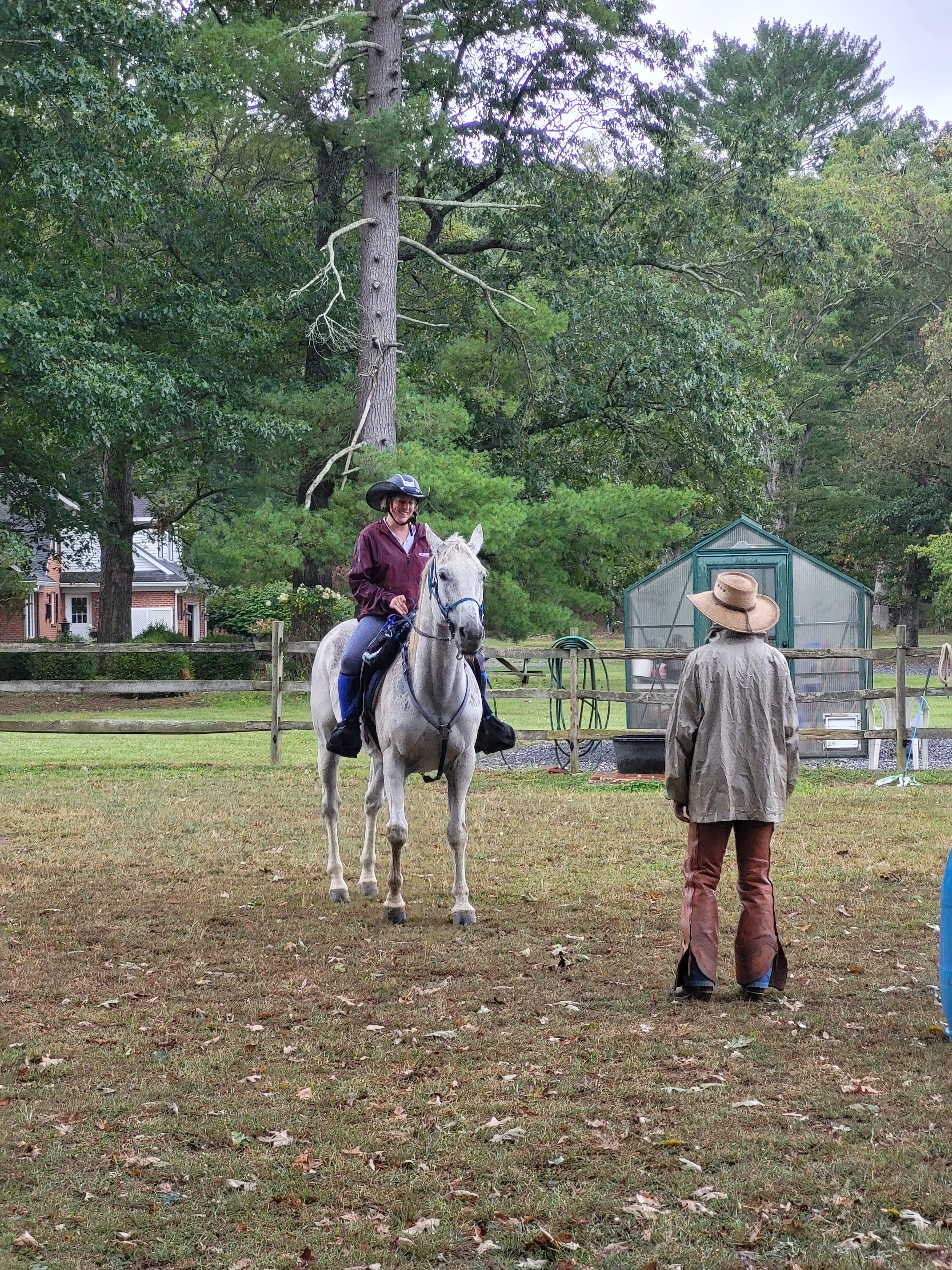 The question still sits in my mind… Am I good enough to work through this? I think with the right tools, and if I can manage not to get dizzy during the 1-rein work, I have hope… Our little clinic gang really wants to see Tom more often, so I’m hopeful that we can keep going to clinics and lessons, practice in between, and have some major progress together.