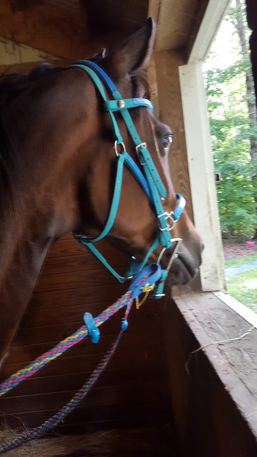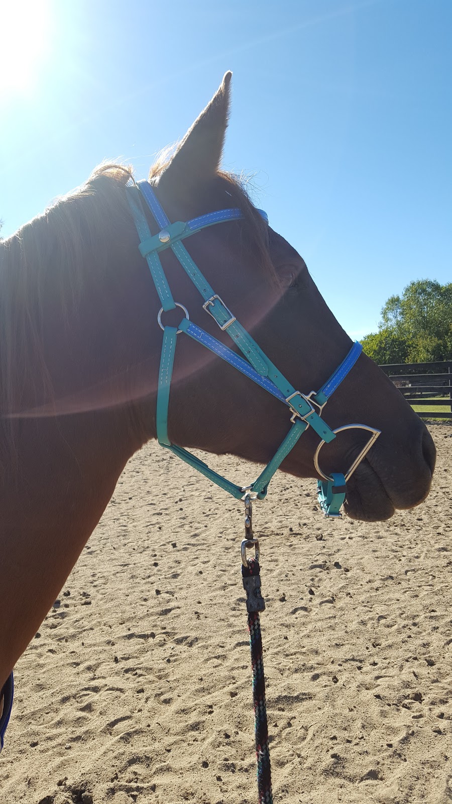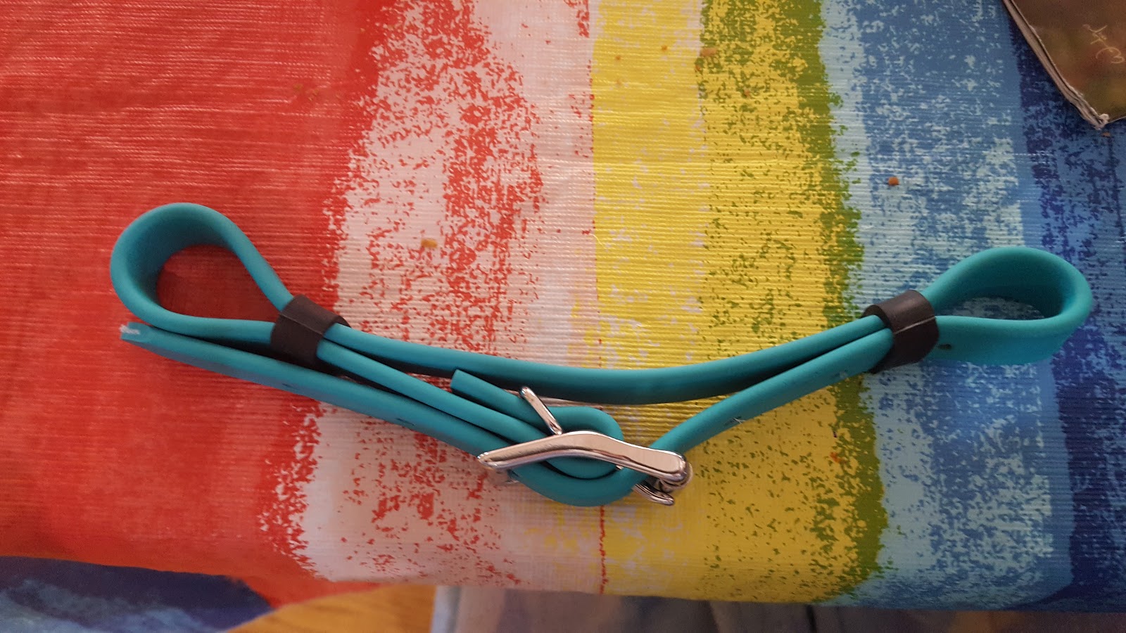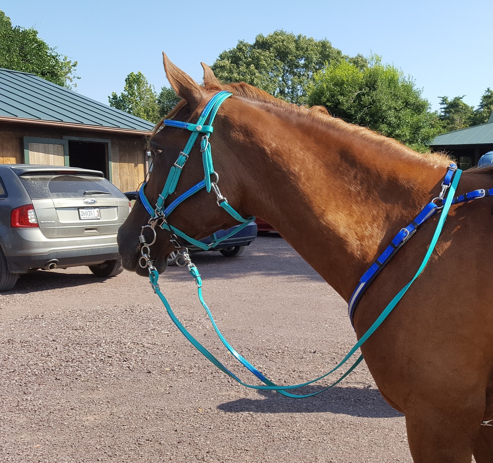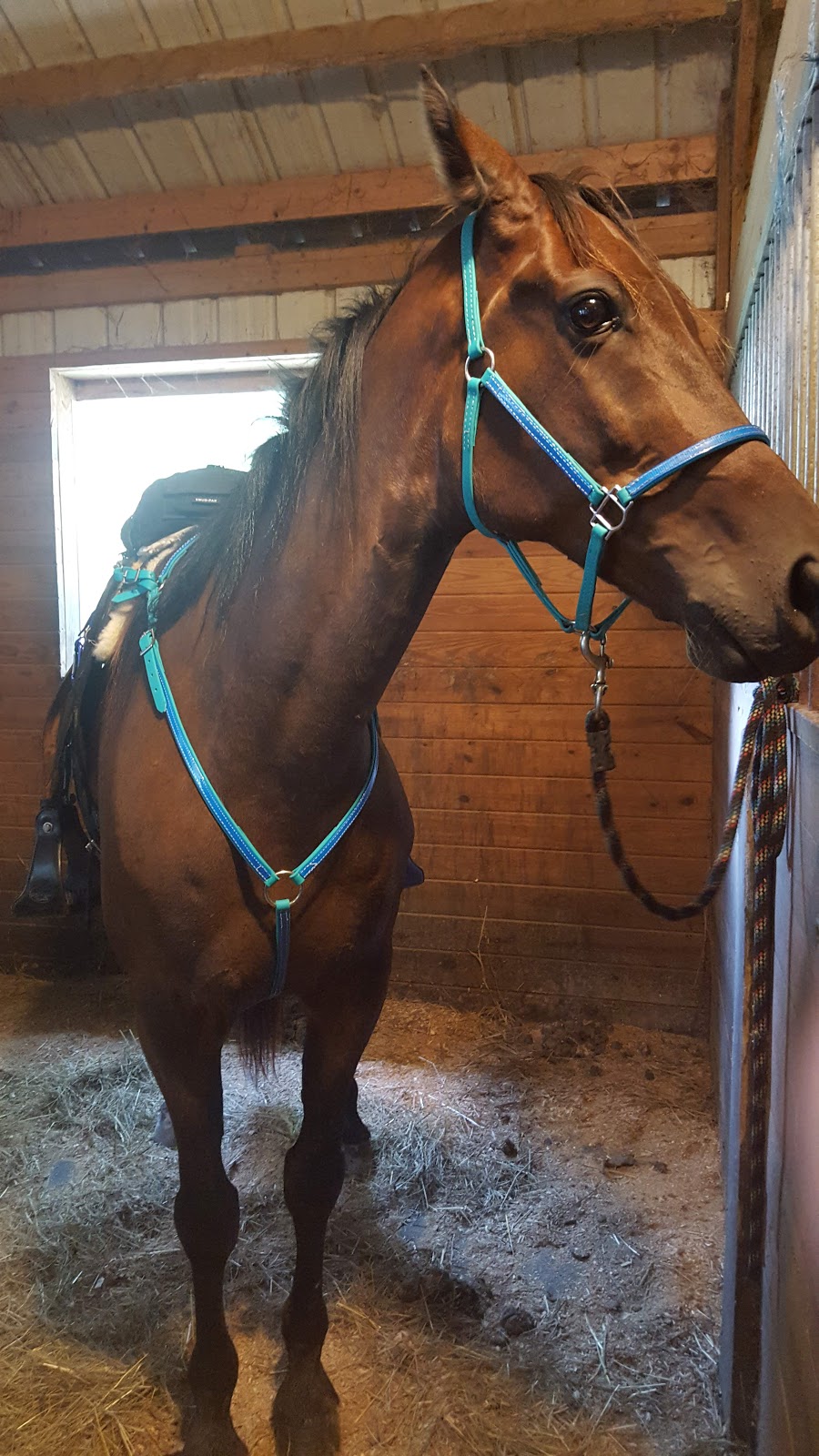 Crupper, just arrived. I actually have two Cruppers from THT ; the original is a Dark Blue one I bought for Tesla in 2015. Both of these are Arab size, but the Turquoise is available in a thinner beta than the blue was so it has a smaller build overall. The new one also has a snap on the saddle attachment that I can use for easy on/off, or use just the conway buckle like I have on the dark blue.