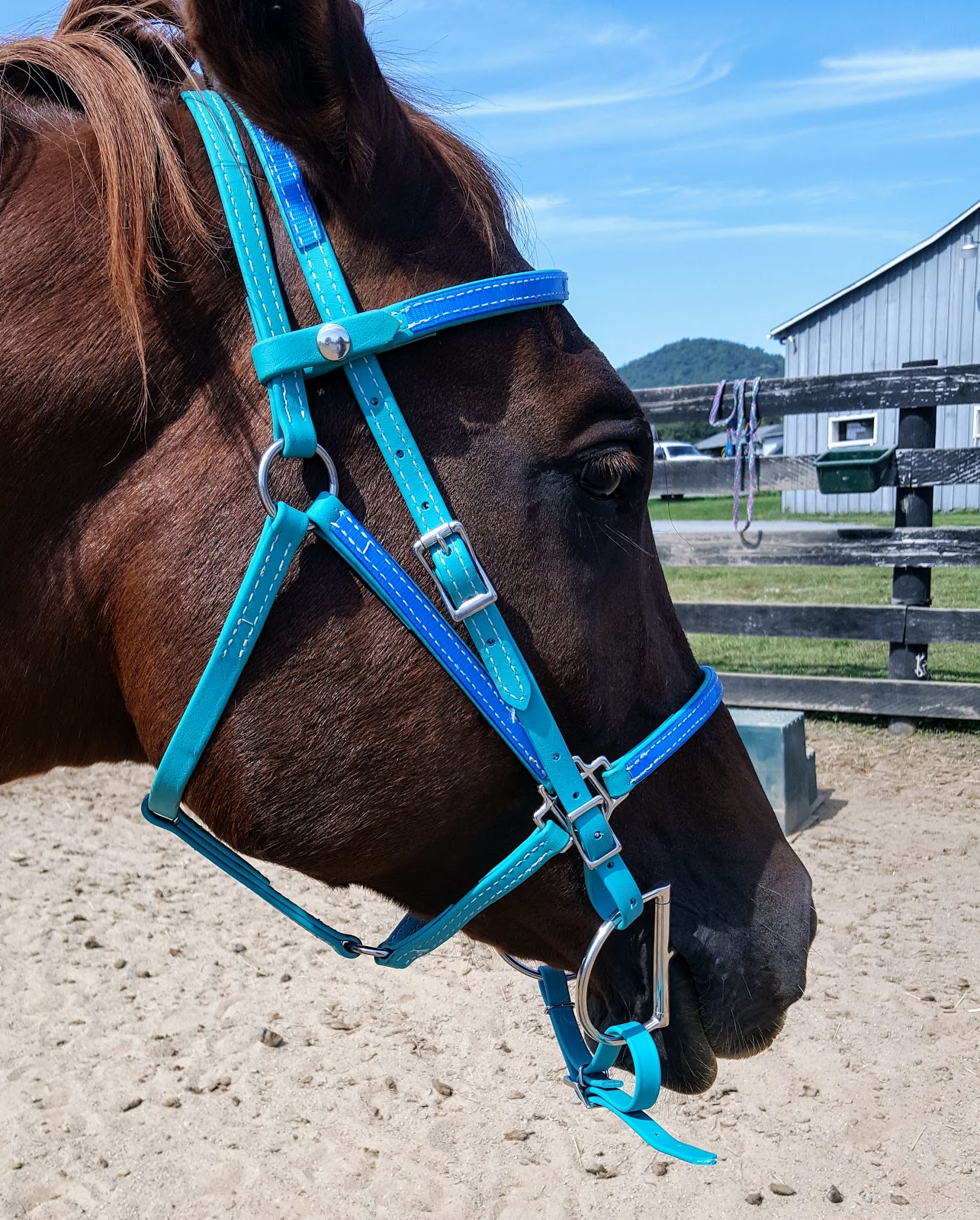 We got a horse size, since he has a bigger brow than Arab sized, and I sent in the measurement for corner-to-corner for the snap on part to make sure we had the right length. His original bit, Myler Combo, tends to sit higher, so there needs to be lots of adjustment for its placement too.