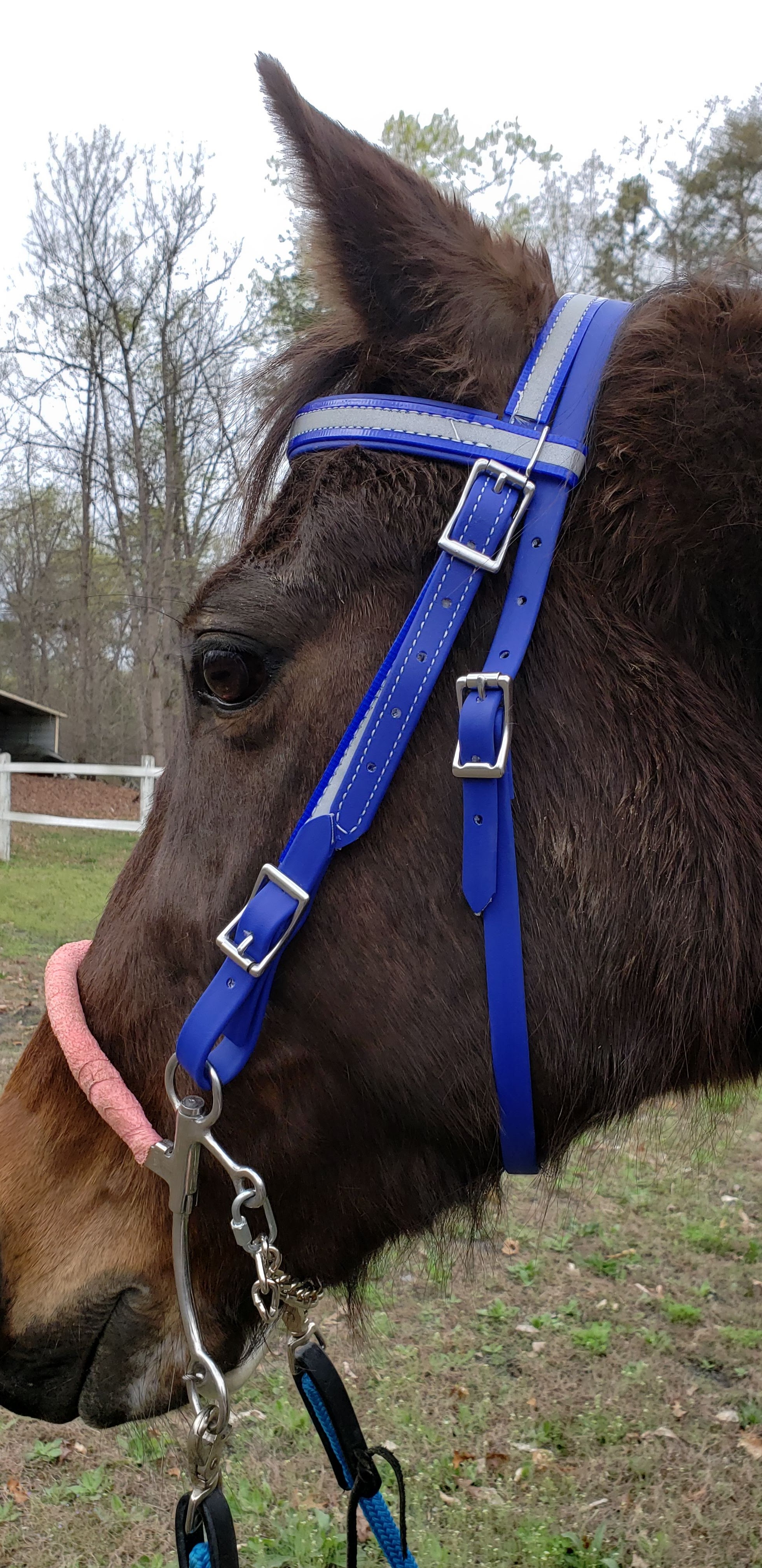 I was approached by THT to do another blog review for 2019. Sully looks smashing in the endurance set of theirs we use that is turquoise and teal/sky blue, and since I have an “extra” reflective blue breast collar (another brand’s) and a blue beta THT crupper around without a matching bridle for it, I said sure! I went with a different style this time by not getting snap on type, it is their Western Bridle, full brow-band and reflective overlay.
